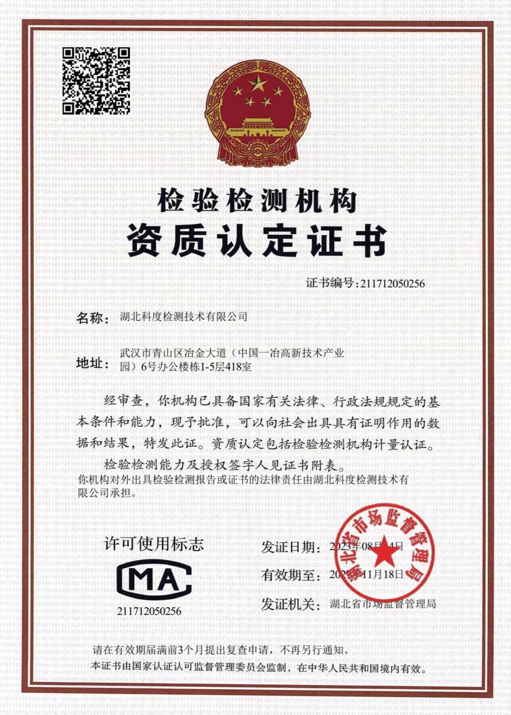 湖北科度檢測技術有限公司是一家專業(yè)從事環(huán)境類及相關領域檢測的第三方檢測機構,公司已通過湖北省市場監(jiān)督管理局CMA計量認證,可以面向社會出具權威CMA檢測報告。 我公司實驗室嚴格按照國家標準建設,擁有一大批國內外先進儀器設備及現代化配套設施,并有經驗豐富的中高級專業(yè)技術人員和嚴格的實驗室質量保證體系為項目運作提供強力支撐。 作為第三方檢測機構,公司始終以高度的社會責任感經營企業(yè),以“公正、嚴謹、高效”為宗旨,依托專業(yè)的技術實力為客戶提供專業(yè)優(yōu)質檢測服務,受到政府、企業(yè)和社會各界的廣泛關注和認可。